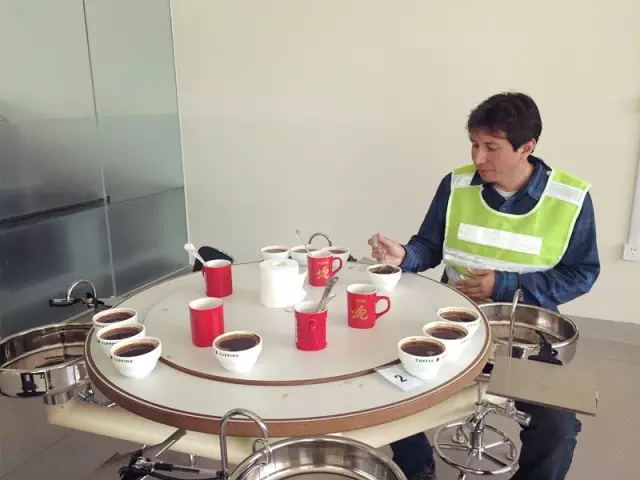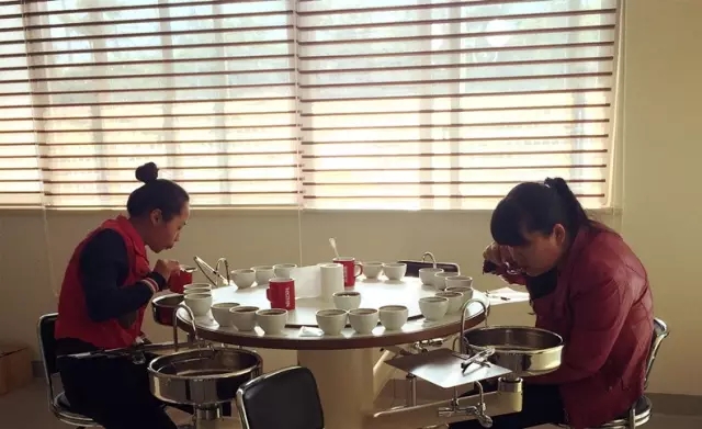 ▲ 工作人员测评农户送来的咖啡品质