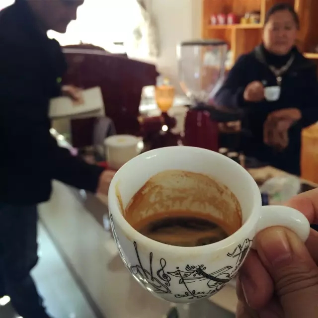 在距离王忠学咖啡地不远处的一家脱壳厂里,曾到国外参加咖啡师大赛的总经理李春梅,熟练地用特别定制的意式咖啡机制作expresso,她细细品尝着咖啡上覆盖的那一层细腻浓郁的油脂,与此同时,她的丈夫正在一旁冲泡当地盛产的普洱生茶,象征着东西方文化差异的茶与咖啡,在这里和谐共存。